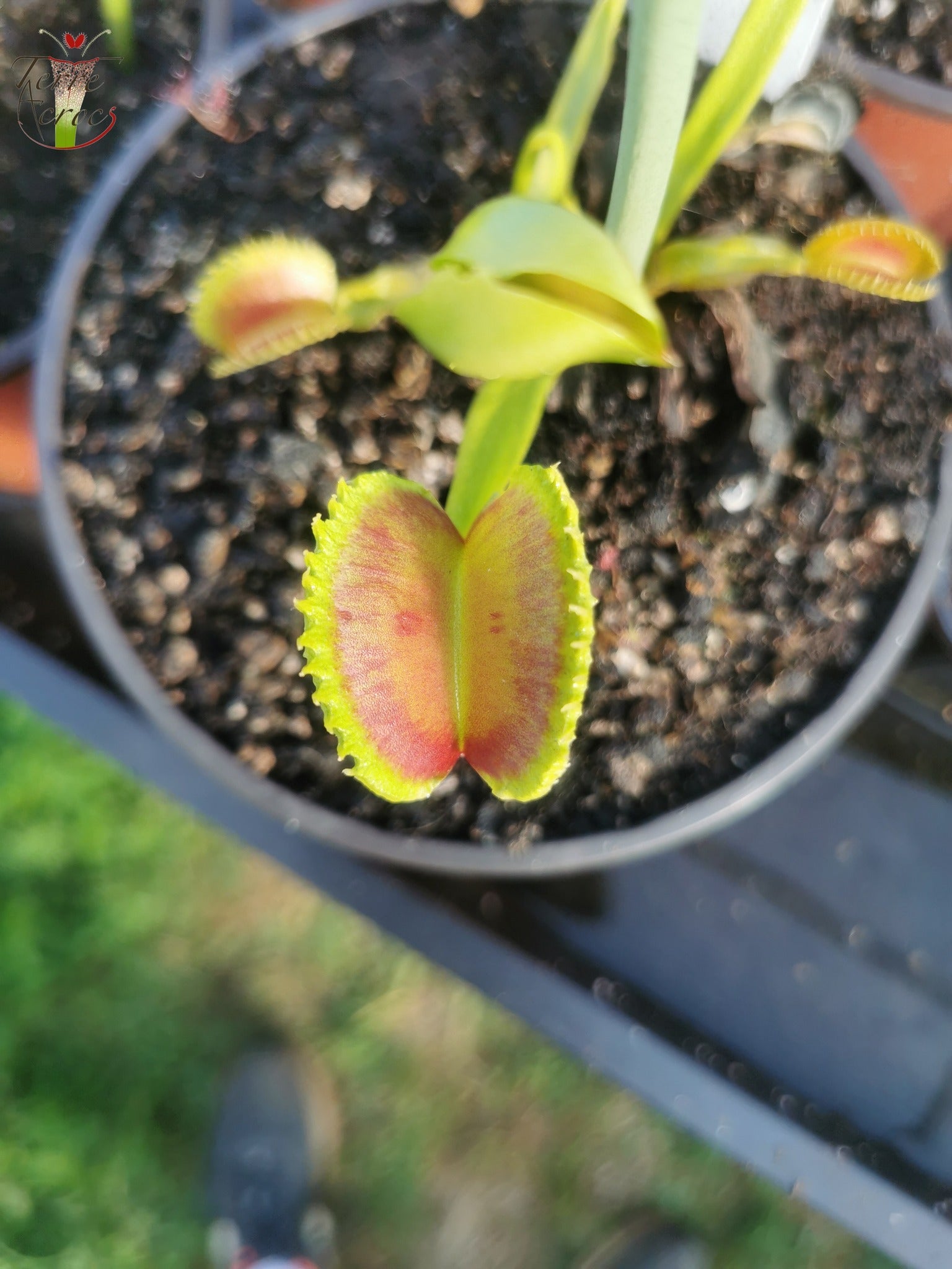 Dionaea muscipula "GJ Nosferatu" est un cultivar de dionaea à la dentition et couleur atypique. L'intérieur des pièges présente une forme souvent convexe et peut présenter un dégradé de couleur rouge de plus en plus foncé vers les extérieurs. Il s'agit d'une Dionaea à la forme érigée et bien vigoureuse.