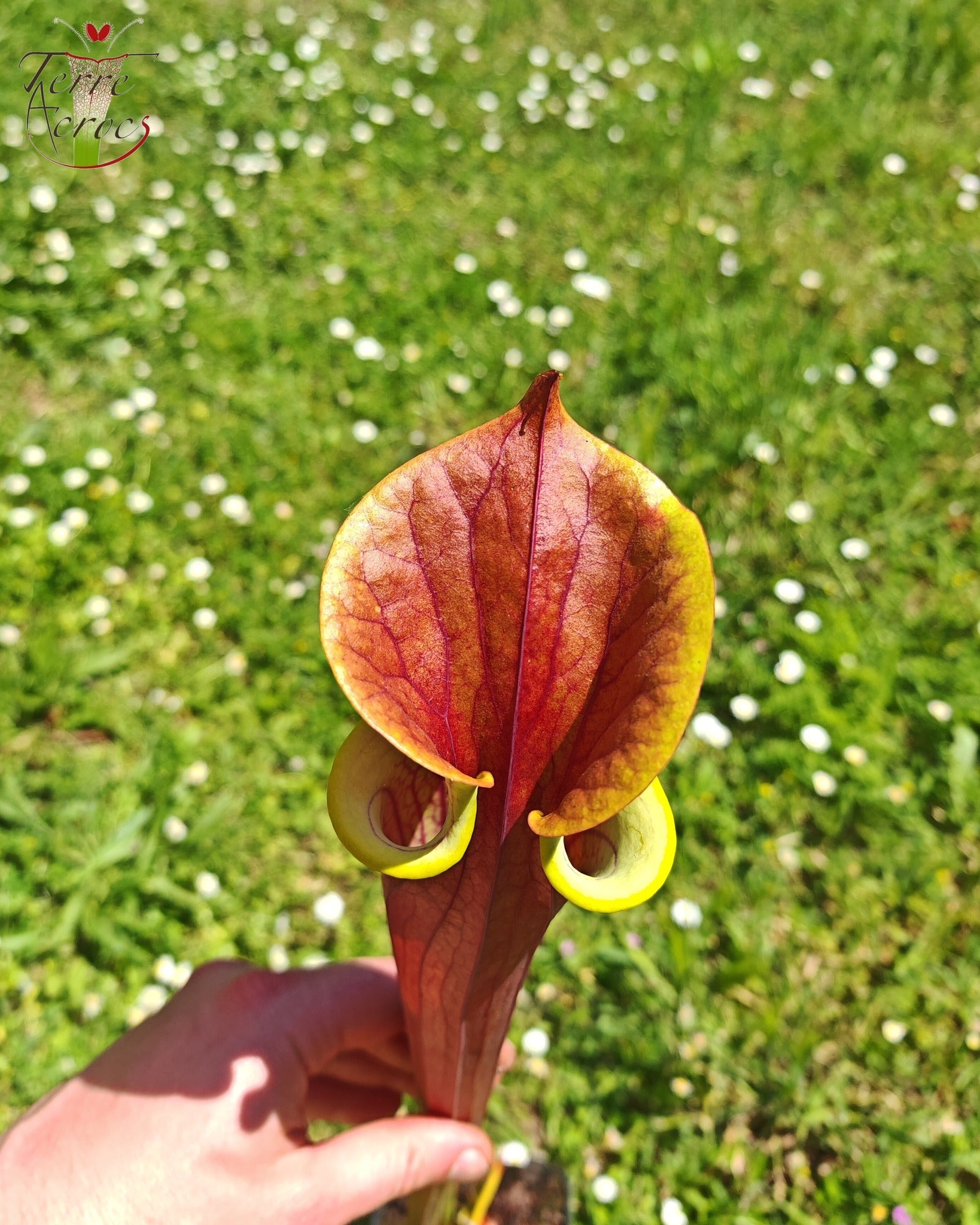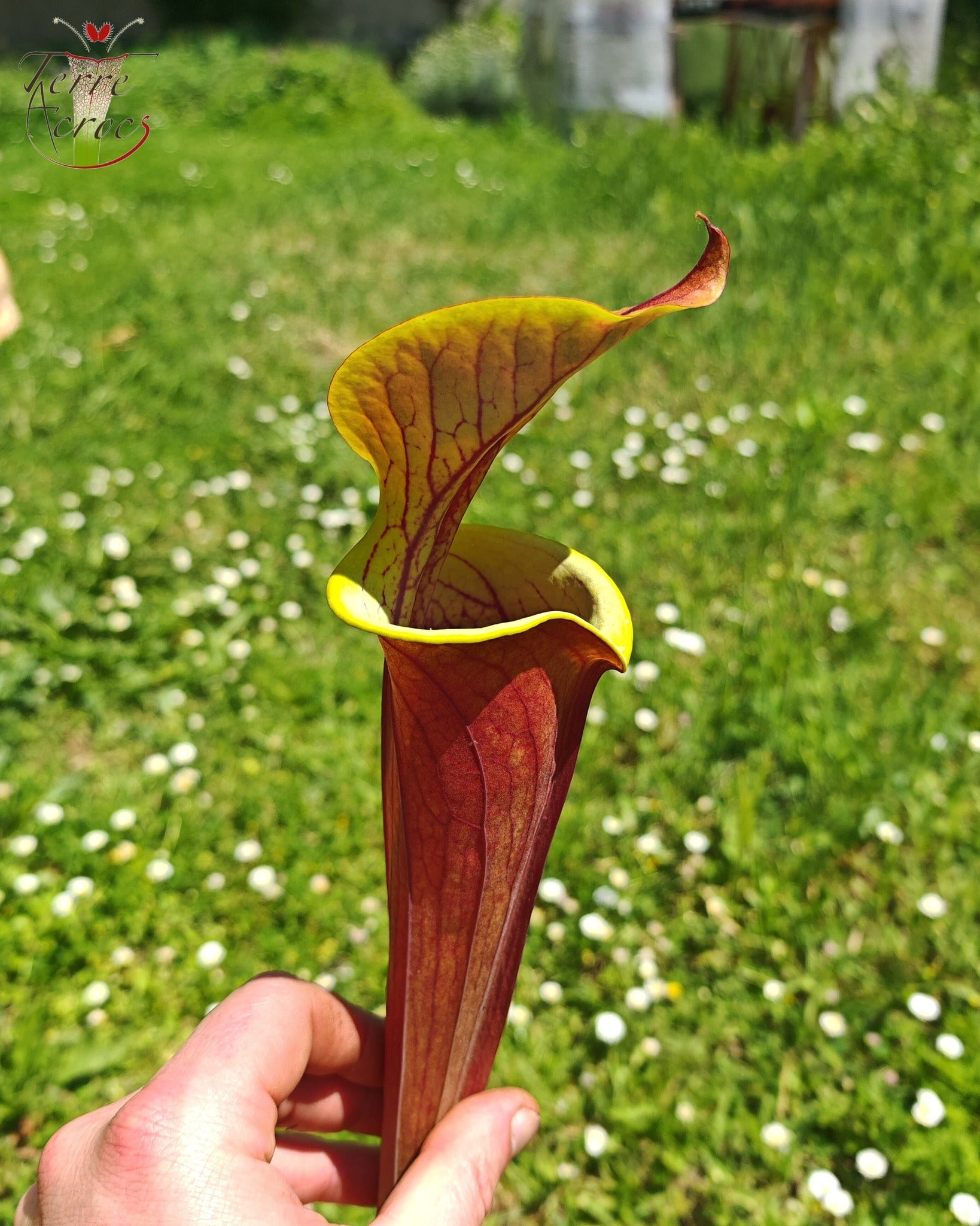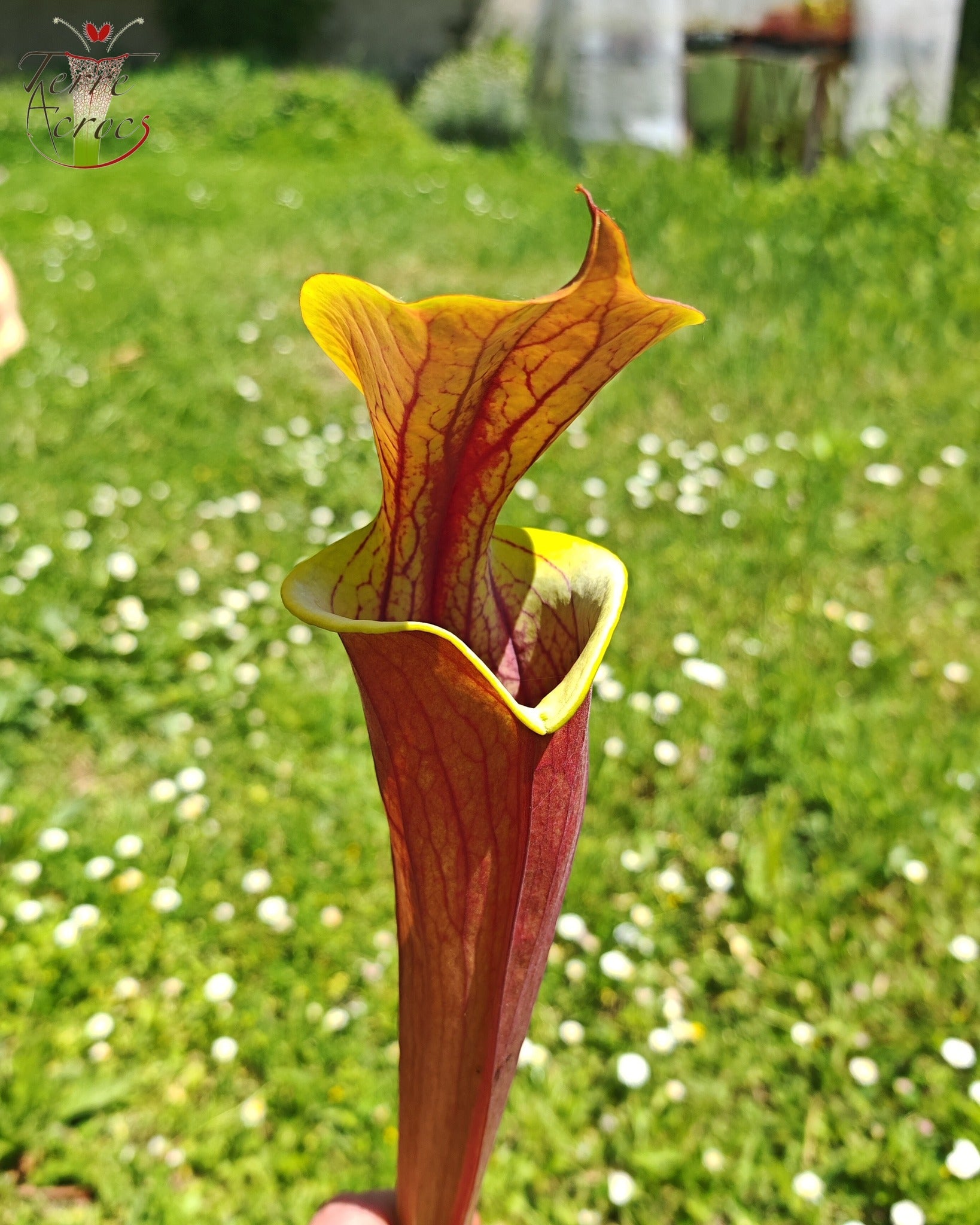 Un magnifique Sarracenia flava var. rubricorpora qui atteint de très jolies tailles. Une plante imposante et très colorée qui saura se faire remarquer en collection.