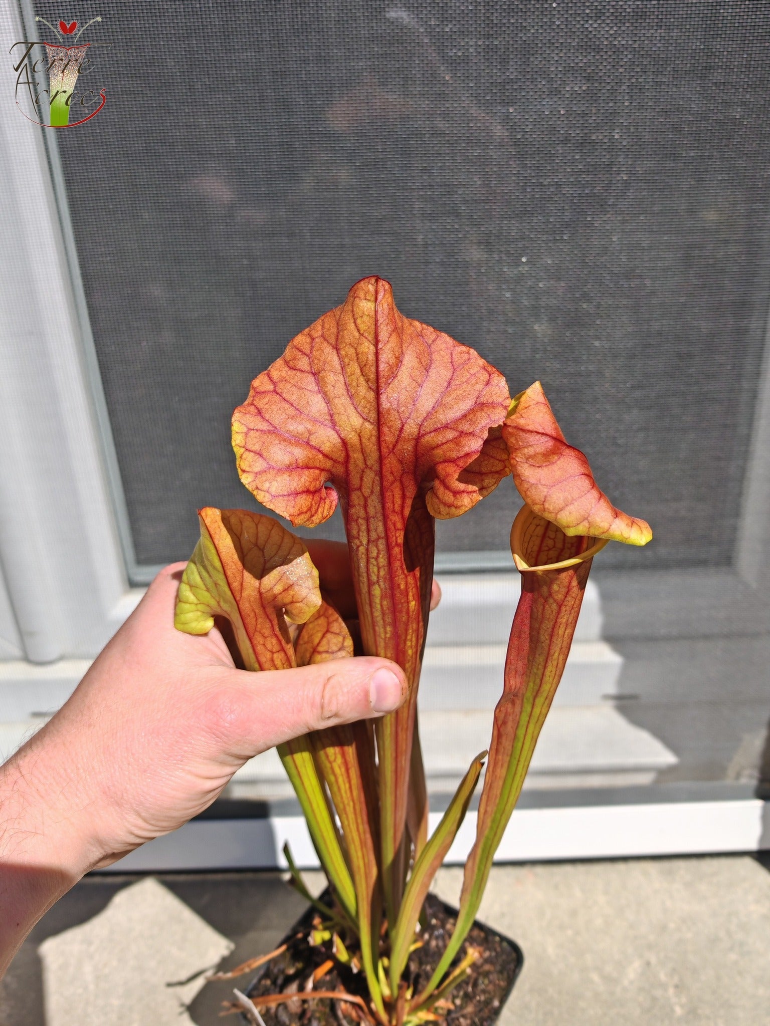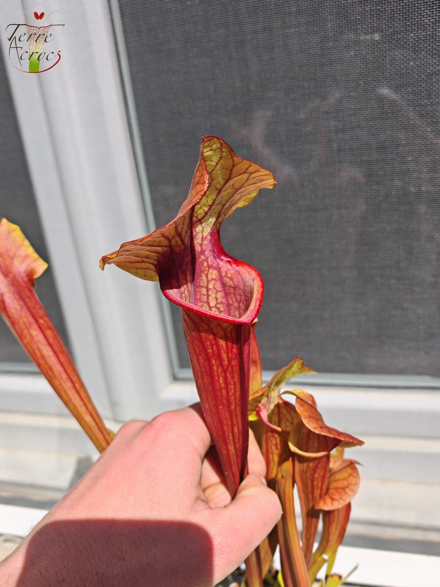 Un hybride personnel de Sarracenia issu d'un croisement entre un flava var. ornata et un x mitchelliana. Cette plante a été obtenue à partir de mes graines. Dans sa version d, une très jolie plante qui se rapproche de "Floor is Lava", l'une des mes meilleures sélections de ce croisement. Cette plante n'est pas gardé en collection, quand mon stock sera vendu il ne reviendra jamais à la vente.
