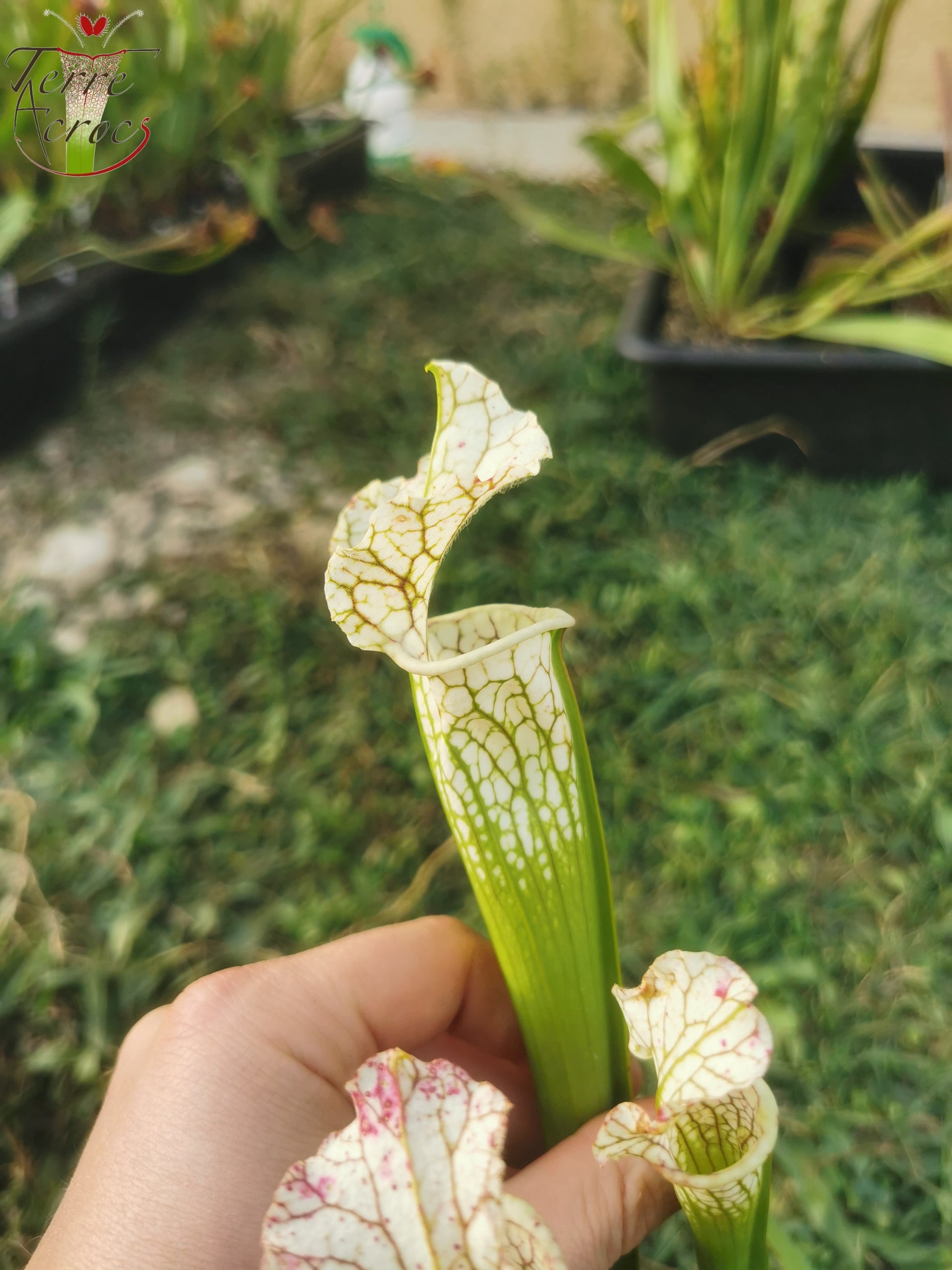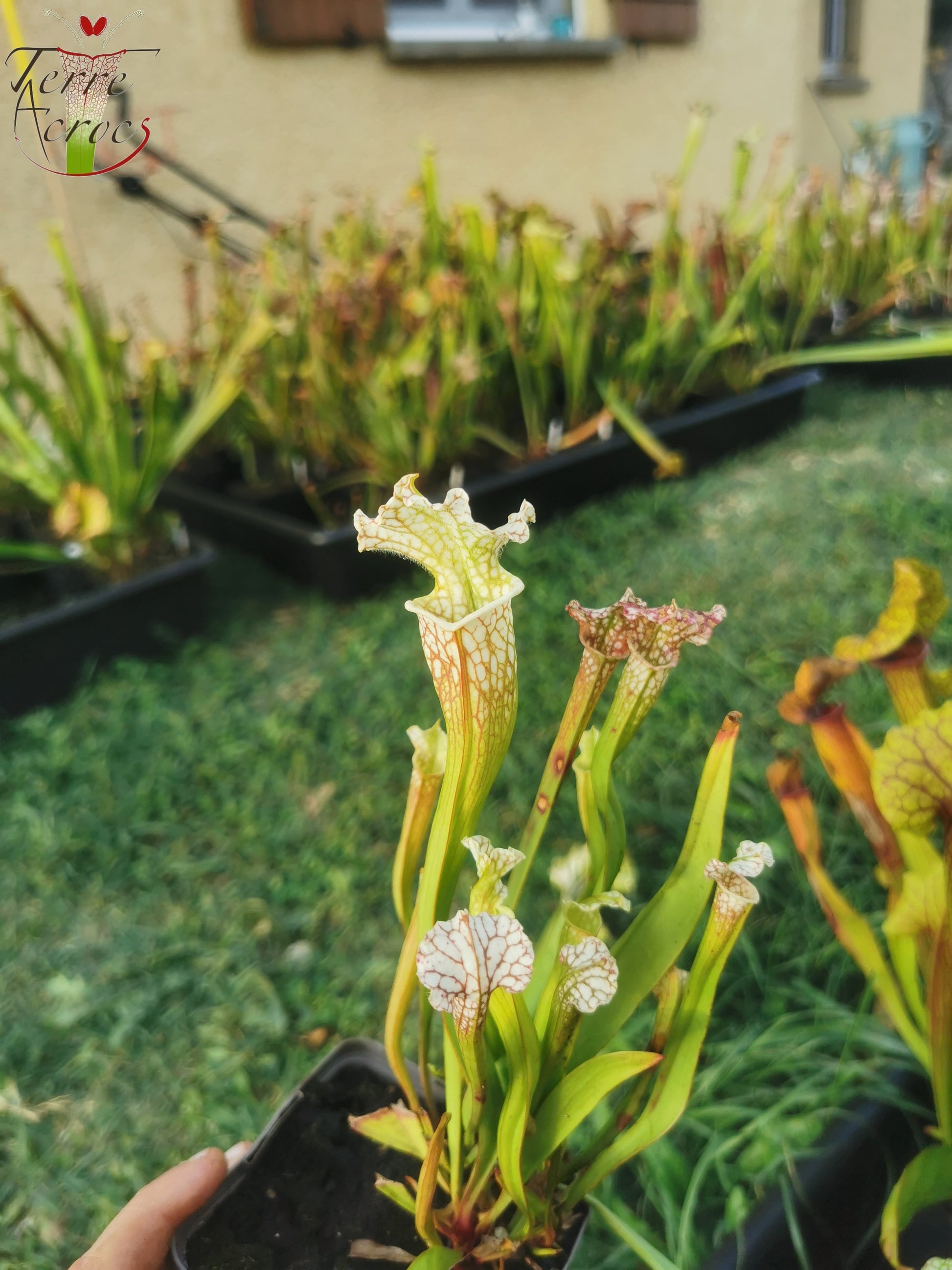 SX24 Sarracenia x (((S. leucophylla × S. oreophila) × S. leucophylla) x Hurricane creek white, seedling. Vigorous, Stefan Lessen)