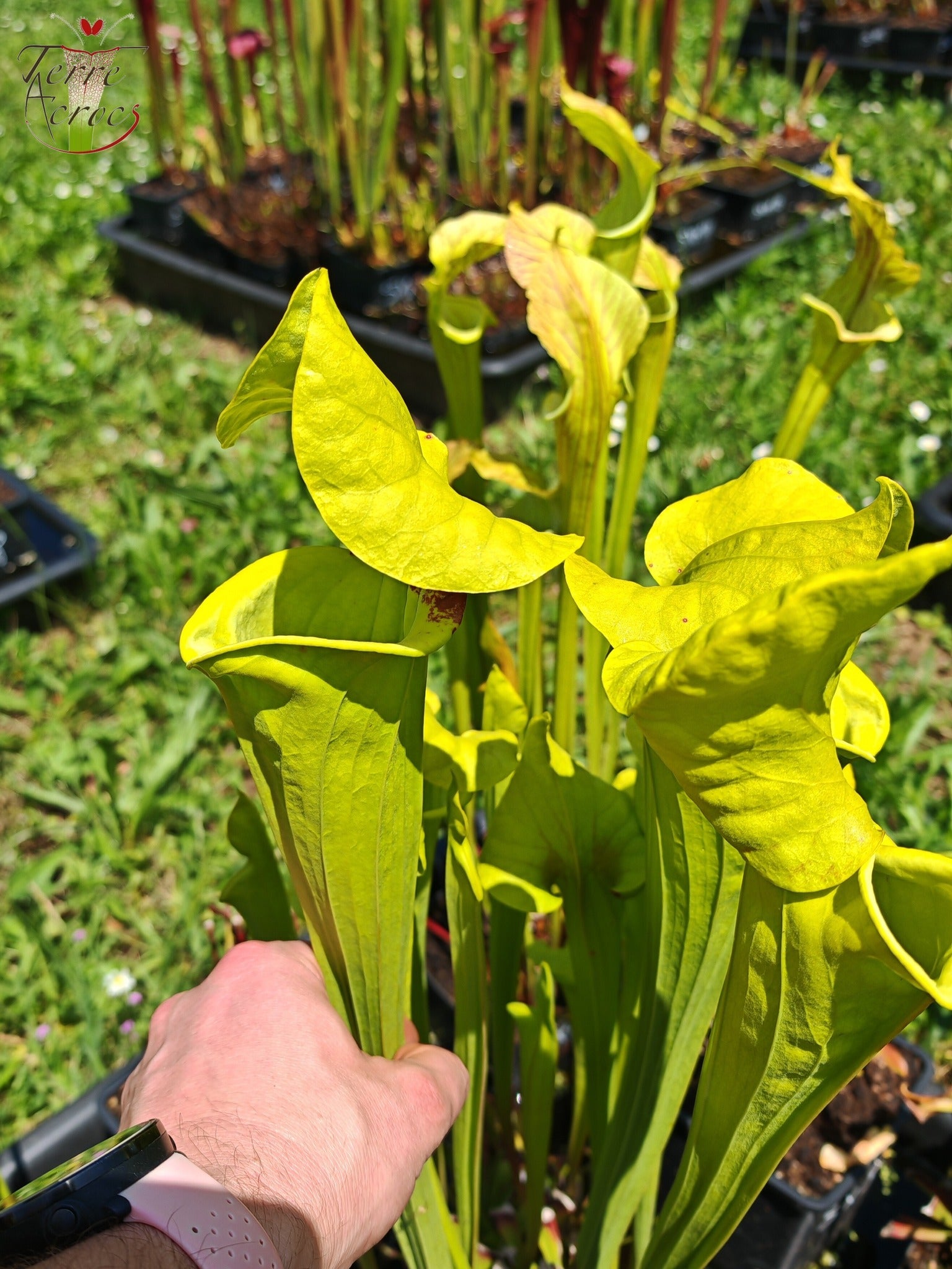 SX34 Sarracenia x (S. x moorei – Marston exotic (1987 clone)(H24, MK) x S. flava var. rugelii -- Telogia, FL.(WS). Very large from, (F140A MK))