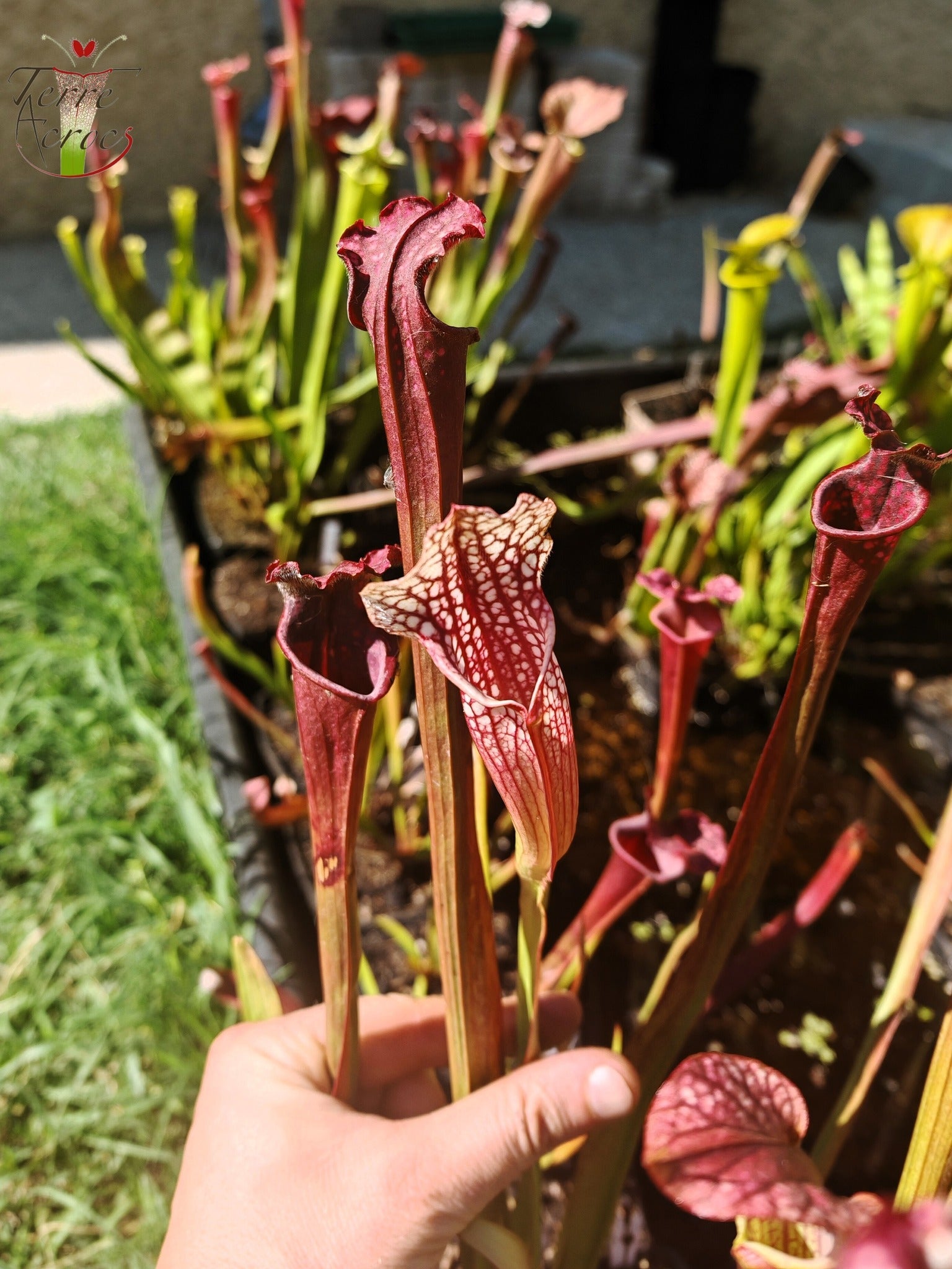 Sarracenia hybride unique. Une plante vraisemblablement croisée avec du x 'Bella' dans sa parenté.
